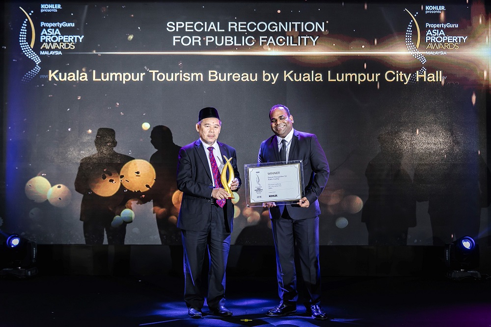 PropertyGuru Malaysia country manager Sheldon Fernandez (right) presents a special award to Kuala Lumpur City Hall at the 2018 gala dinner and ceremony