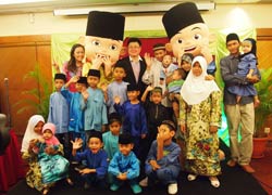 As simple as the dinner was, it did bring smiles and laughter to the children and guests when cartoon mascots Upin and Ipin from the popular Malaysian 3D animation made an appearance.