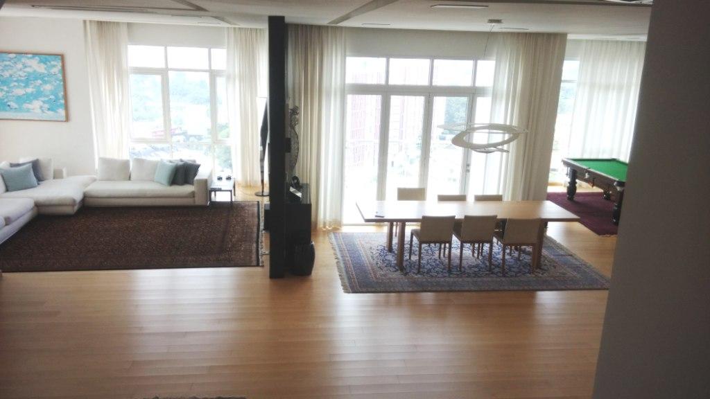 Nothing encroaches the expansive living area that evokes a grand hall with its high ceiling and abundant natural light. Bespoke furnishings and a state of the art centralized AV system adorn its surrounds and a sleek, fully-equipped avant-garde kitchen beckons.