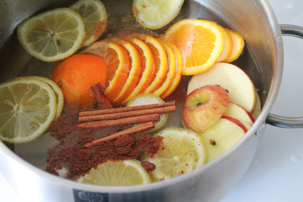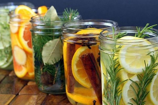 Use a small pot and fill with water. Add cinnamon, rosemary, lemon, orange, and half-tablespoon of vanilla extract. After simmering for a whole day, it will immerse your home with a strong yet earthy fragrance. After one week, replace the entire concoction with fresh herbs and essential oils for a refreshing daily aromatherapy.