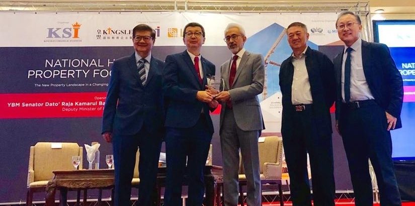 LBS continues to support Government’s affordable housing agenda. (Second from left) LBS Bina Group Berhad Group Managing Director, Tan Sri Lim Hock San, receiving a token of appreciation from (Centre) Deputy Minister of Housing and Local Government Malaysia, YBM Senator Dato’ Raja Kamarul Bahrin Shah Ibni Raja Ahmad Baharuddin Shah, at the National Housing and Property Focus Summit. With them are (from left) Kingsley Strategic Institute President, Tan Sri Dato’ Dr Michael Yeoh; Country Heights Group, Founder and Chairman, Tan Sri Lee Kim Yew, and; Kingsley Strategic Institute, Chairman, Tan Sri Dato’ Sri Barry Goh Ming Choon.