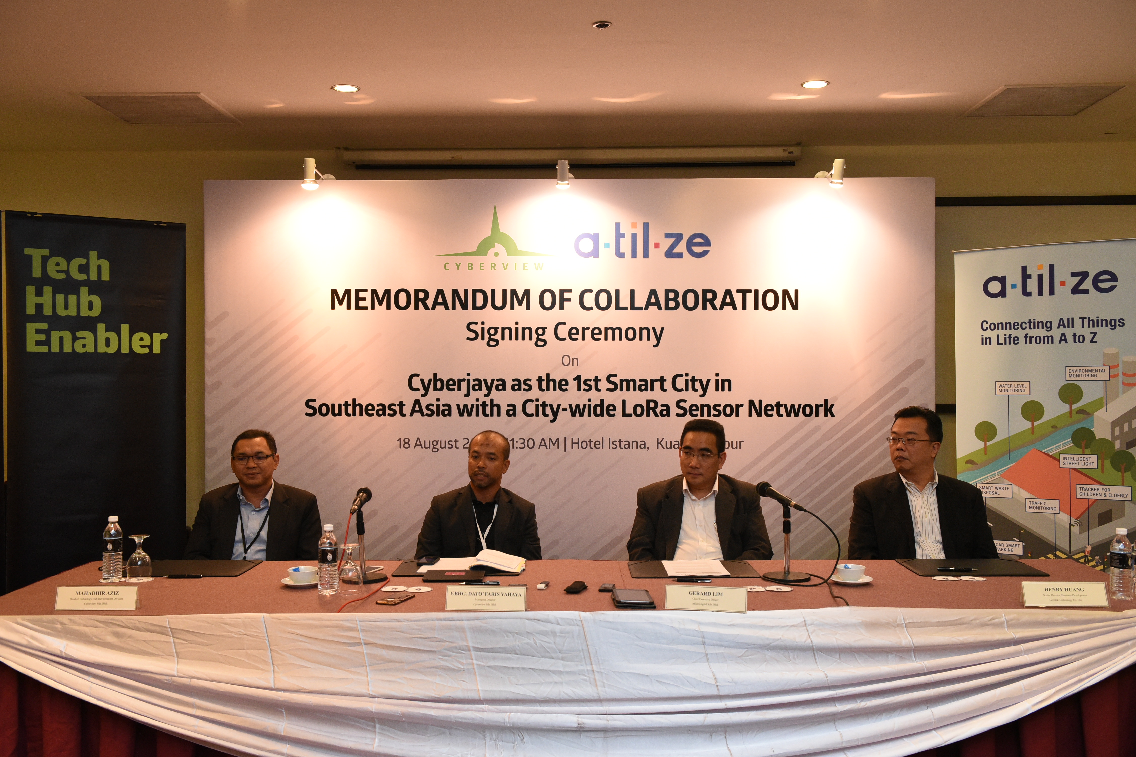 Around this time last year, we set out to develop Cyberjaya into a model ‘Smart and Safe City’ through IoT. With this collaboration, Cyberview and Atilze will be working together to elevate the city towards being a ‘Living Lab’ to nurture and grow IoT talents and businesses. The most exciting thing about this collaboration is the potential that the LoRa networks represent for developers and solution providers looking to test next generation applications that also generate open data in line with Cyberjaya being Malaysia’s Capital of Creation. We invite all ecosystem partners who have ready IoT applications, to work with us and integrate their ready IoT applications to be LoRa enabled, and implemented on Cyberjaya’s LoRa network.” – YBhg. Dato’ Faris Yahaya, Managing Director, Cyberview Sdn. Bhd.