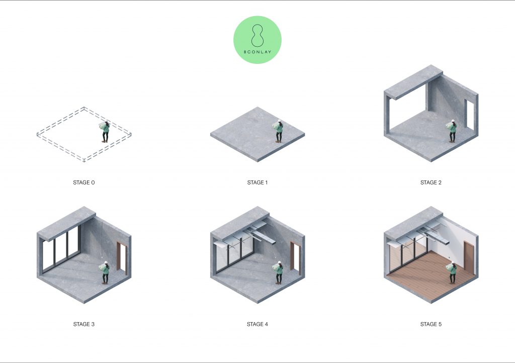 Home owners can easily keep track of their individual unit’s construction progress in the 8 Conlay mobile app. This will be displayed via 3D renderings that will steadily evolve through different stages of construction. Each update also includes estimatedpercentages for the different components that make up each unit which are categorised as structure, architecture, mechanical & electricity, and interior.