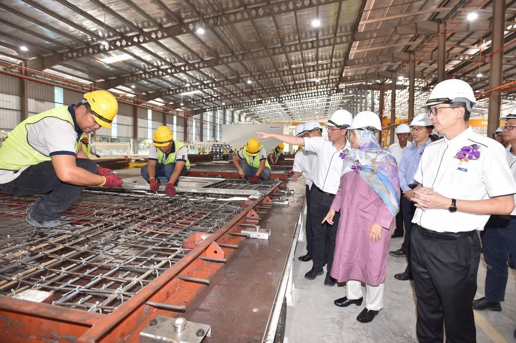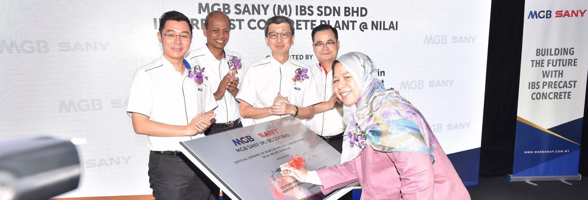 Nilai, 16 March 2019 – MGB Berhad, a subsidiary of LBS Bina Group Berhad, officially launched its first permanent Industrialised Building System (IBS) precast concrete plant located in Nilai, Negeri Sembilan today. With an investment of RM40 million and a built-up area spanning 119,017 sq ft, the plant will produce, market, sell and install a range of IBS components from precast concrete panels, concrete wall panels, concrete slabs to column and beam. The opening of the plant was officiated by Minister of Housing and Local Government, YB Zuraida Kamaruddin. In May 2018, MGB deployed its first mobile IBS plant at LBS Alam Perdana township with a production capacity of 2,000 units of properties per year. During the pilot phase, the mobile plant has successfully produced and supplied for 673 units of double storey terrace houses at LBS Alam Perdana township. With IBS, the pilot project was completed within 12 months instead of 18 months, which led to a saving of 33% on construction time. It also successfully reduced dependency on manual labour by 31%, achieving a 49% percent reduction in total on-site labour costs. Combined with this Nilai plant, the company will be able to produce 4,000 units properties every year.