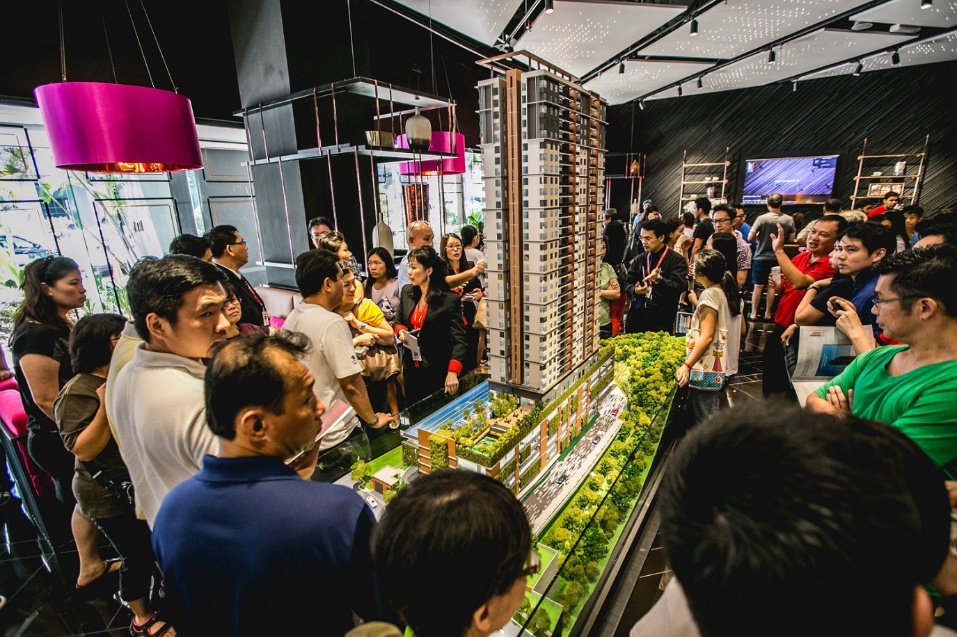 Members of the public viewing one of the Sunway Mont Residences unit scale models.
