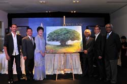 l-r – Ali Nurazmal (artist), Mr. Arthur Kiong, Datin Cindy Lim, Tan Sri Aziz, Mr. Ho Kwon Ping, Major Ismail Bin Ahmad (Dir. of Lumayan Indah)