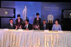 l-r – Arthur Kiong (MD of Hotel Operations), Mr. Ho (Exec Chairman of Banyan Tree), Tan Sri Aziz (Chairman of Lumayan Indah), Datin Cindy Lim (Dep. Chairman of Pavilion KL)