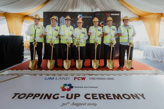 KUALA LUMPUR, 30 AUGUST 2019 – IJM Land Berhad and its joint venture partner, FCW Holdings Berhad, co-developers for Savio, hosted a topping-up ceremony today at the rooftop of the development to mark the completion of the structural frame of Savio Multi Generational Suites. Located in the emerging Segambut, Savio is the first of a three-phase development of Riana Dutamas, a 37-storey tower with a gross development value of RM565 million. It has to-date achieved a take-up rate of 90%. With its affordable price, location, great connectivity and value propositions, it is no surprise then, that the project has piqued keen interest from home buyers and investors alike. The 1,018-unit Savio remains on track for its targeted completion in 2021.