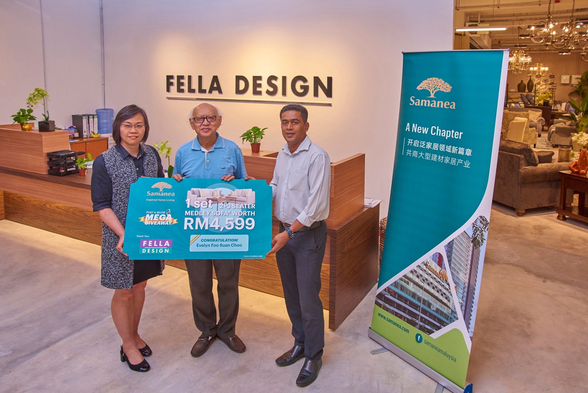 Kuala Lumpur, 15 July 2019 – In conjunction with the grand launch of its Home Living Centre in Glo Damansara, Samanea Malaysia organised a ‘Post A Selfie’ Mega Giveaway in collaboration with Fella Design and luxury bedding expert, DeRUCCI. The photography competition attracted both the young and young at heart, especially families, who submitted creative snaps on Facebook with a caption “Inspired home living with Samanea Malaysia’.