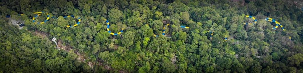 This unprecedented water slide sits atop the highest point of ESCAPE’s forested land area with an elevation of 70 metres at the start. The slide is a four-minute downhill joyride which zigzags and criss-crosses through natural forest and tree canopies before eventually crossing the main Teluk Bahang Road and into ESCAPE Waterplay on the opposite track of land. As part of the development, a cable car chairlift, the only chairlift of its kind in Malaysia, is being built to transport customers from the foot of the hill to the top. This chairlift will also carry the slide rafts as well as other equipment for Hill Rider and Tubby Racer, two additional attractions next to the world’s longest water slide as part of Gravityplay, the third phase of ESCAPE.