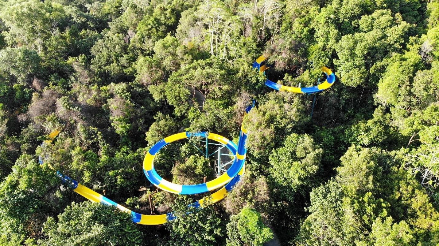 “Breaking the world record was never the intention. The idea of this water slide came about over frustration that most fun rides and water slides last merely a few seconds, and having the water slide start on a hilltop at a 70-metre elevation would make this ride last a good few minutes. ESCAPE embraces the philosophy of promoting eco-literacy through fun, this water slide would ride guests through the jungle down the hill and all the way to the other side at the water park. Given the gradient required of the water slide, we suddenly realised this has to be in excess of 1km, which turns out to be a record-breaking feat!” – Sim Choo Kheng, CEO of Sim Leisure Group