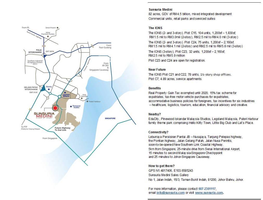 The highly anticipated metropolis centre of Medini at Iskandar Malaysia will have reasons for those in the healthcare, logistics, tourism, education, financial advisory and creative to look its way.