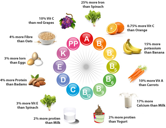 Nutritional content is essential for a balanced diet and a healthy lifestyle. The leafy parts of the tree are widely known to contain the highest proportion of vitamins and minerals. Its leaves are perfectly edible, and they present no obvious or undesirable side effects known to man. The greatest concentration of vital nutrients such as enzymes, amino acids and other trace elements can also be found within the leaves themselves. By weight comparison (i.e. gram for gram), Moringa leaves have some seven times the equivalent Vitamin C content of oranges; approx. four times the Vitamin A content of carrots; about four times the amount of calcium found in cow’s milk; roughly three times the content of potassium in bananas; three times the content of Vitamin E in spinach; three times the amount of iron in almonds; and an estimated twice the protein in regular yogurt.