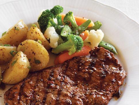 A generous offering (i.e. 150 gm portion) of premium-cut beef/buffalo steak pan-grilled to perfection, marinated with your favourite black pepper or brown sauce. Served sizzling hot with an assorted selection of sautéed vegetables, lightly-baked herbed potatoes, and optional French fries on the sides. Truly an eye-opening treat as well as a mouth-watering dish for steak lovers and meat aficionados alike!